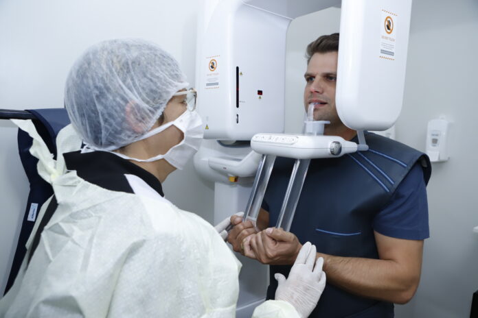 A radiografia panorâmica oferece uma visão completa da arcada dentária e das estruturas ósseas da boca em uma única imagem, servindo como base para diversos tratamentos. Com capacidade atual para até 40 exames por dia, os laudos são emitidos em até sete dias, podendo sair em 24 horas em casos urgentes.