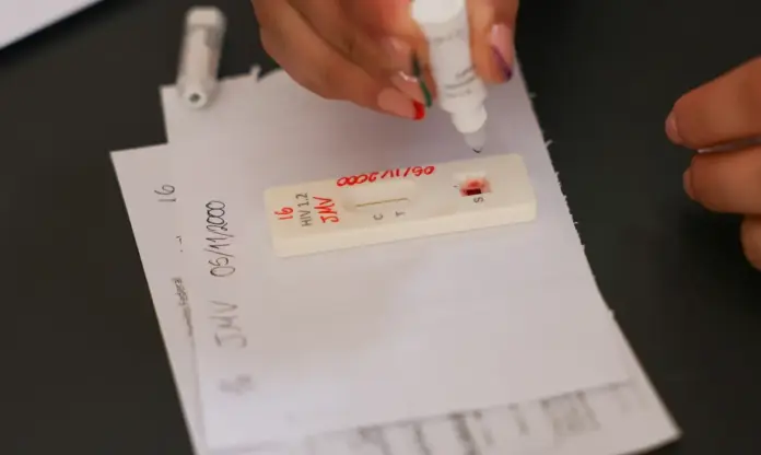 “Ninguém sabe como é que está a vida por fora e por dentro. Então, acho muito importante ter essas campanhas.” Iraídis cedeu uma gota de sangue para testagem de triagem rápida, que pode detectar a presença do vírus em cerca de 20 minutos.